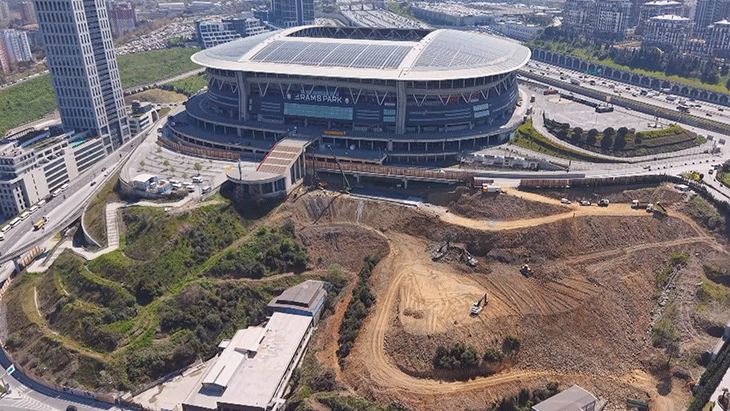 Stadyum çevresinde zemin çalışmaları devam ederken, iş makinalarının çalışmaları havadan görüntülendi. Spor salonları ve kamp tesislerinin temel atma töreni ise 23 Nisan Perşembe günü gerçekleştirilecek.