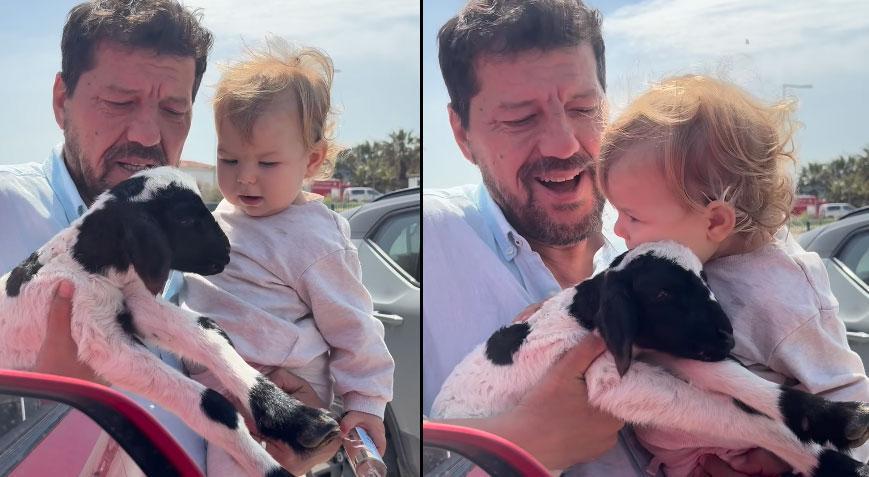 Baba ve kızın kuzuyla olan bu sempatik diyaloğu, kısa sürede binlerce beğeni ve "Hangisi daha tatlı karar veremedik" yorumlarıyla sosyal medyanın en çok konuşulan videoları arasına girdi.
