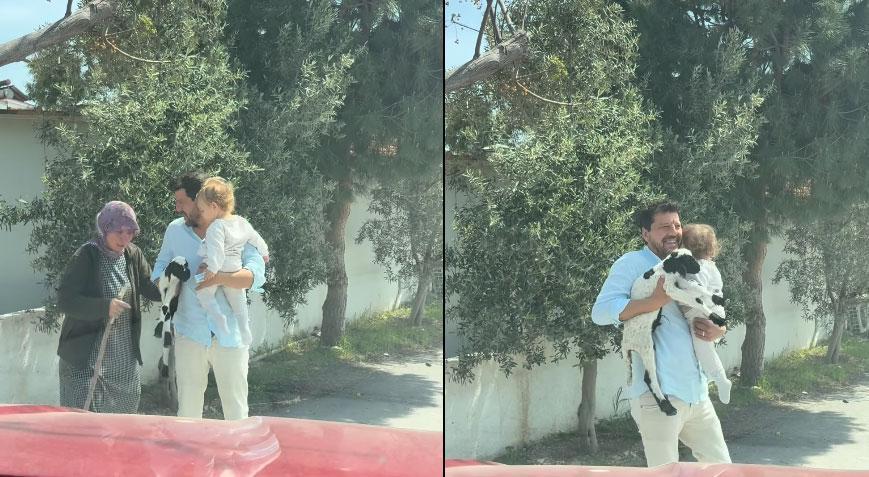 Kısa süreli bir çekingenliğin ardından İlker Aksum'un kuzulardan birini kucağına almasıyla heyecanı artan minik Lila, babasının kucağındaki kuzuyu öperek hayvan sevgisini en saf haliyle sergiledi.