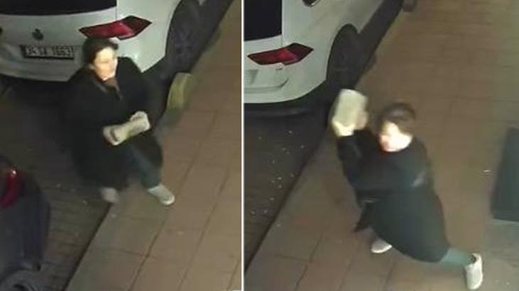 Olay, saat 03.35 sıralarında Molla Gürani Mahallesi'nde meydana geldi. Bir iş yerinin önüne gelen kadın, yerden aldığı kaldırım taşını iş yerine fırlatmaya başladı.